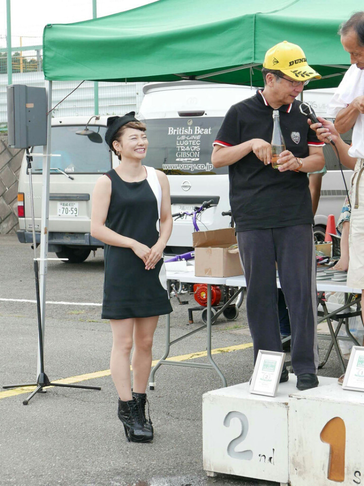 ただ、今回はなんと応援する予定だったKAWASAKI Mach H2のマシンが事情で不参加となってしまい、iB Ladyの二人は表彰式のお手伝いのみがお仕事になってしまいました!(;_;)