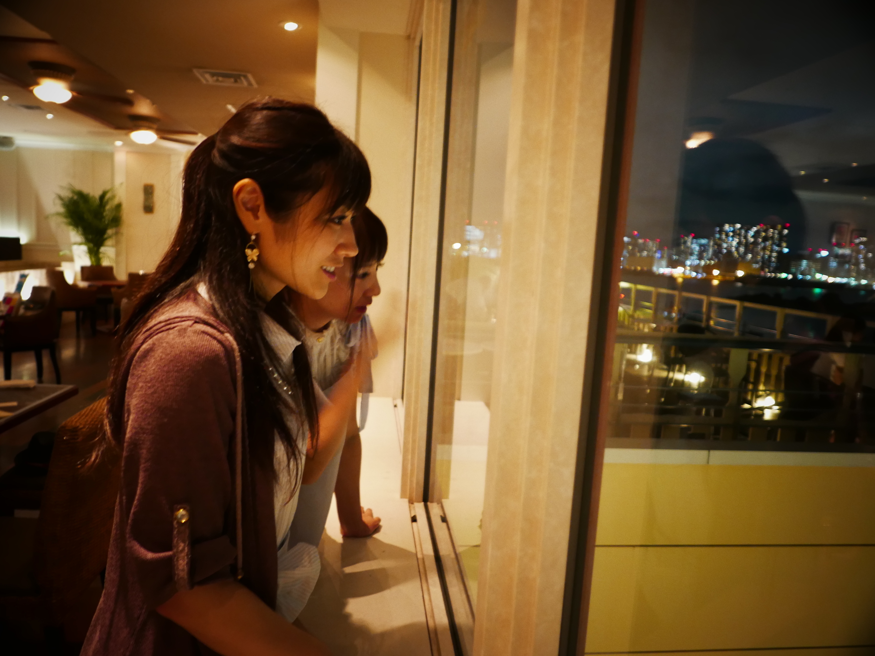 あのね、(ERISAさんも悠愛さんもきれいなんですけど)地上の写真は通常の夜景をみている感じで綺麗です。いい雰囲気のレストランとは言え、自分は現実の環境の中にいて、美しい夜景は鑑賞する対象としてそこにある、という感じで自分と夜景は別のものです。これはこれで素敵なんですよ。